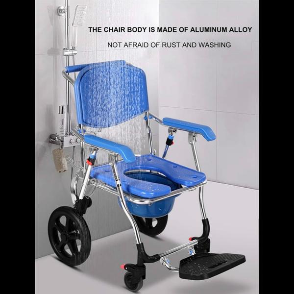 The chair works as both a shower chair and a commode chair. This folding chair is complet...